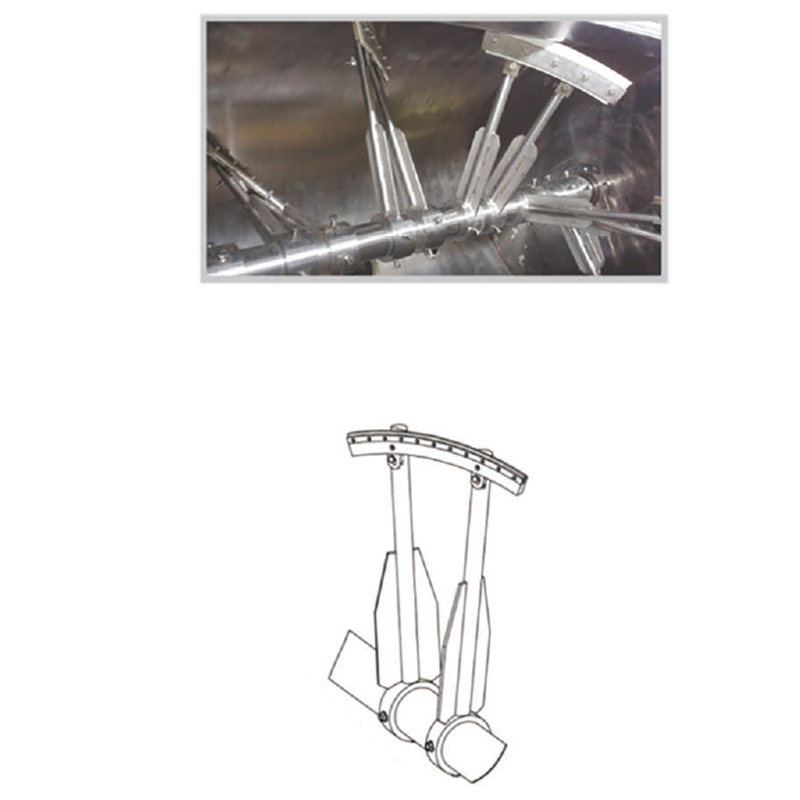 2.攪拌軸的槳葉上帶有刮壁,能使筒壁及筒壁兩側(cè)干凈無(wú)余料。
